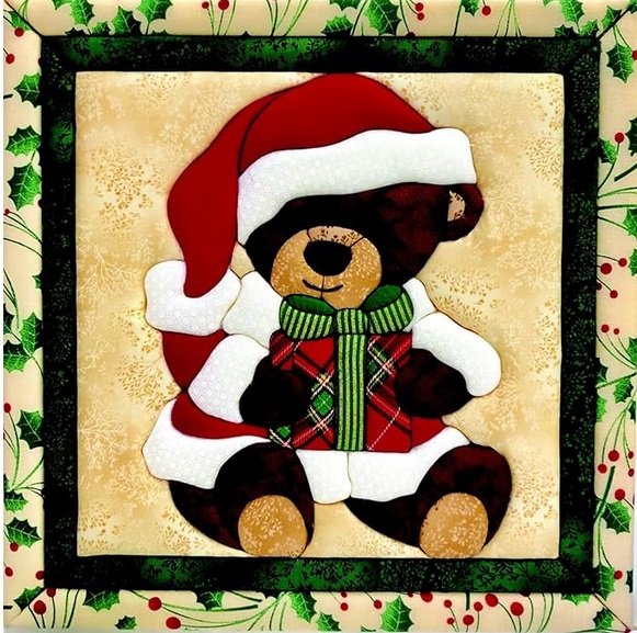 The beautiful Beary Christmas Magic Quilt kit from the introduction is a pretty design with and adorable Santa Bear. It would be fabulous to use on a door or anywhere you want to have “greetings” to those passing by or entering a room. The magic quilt project is easy to assemble and comes with everything you need to create an unframed project.