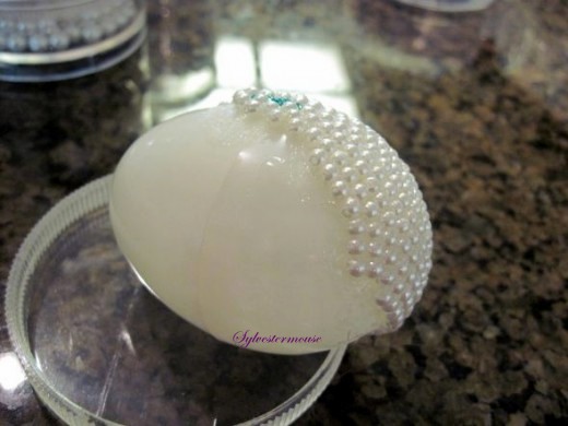 - Glue Your Beads on the Egg. Be Sure to Turn the Beads on their Sides so the holes in the beads do not show.